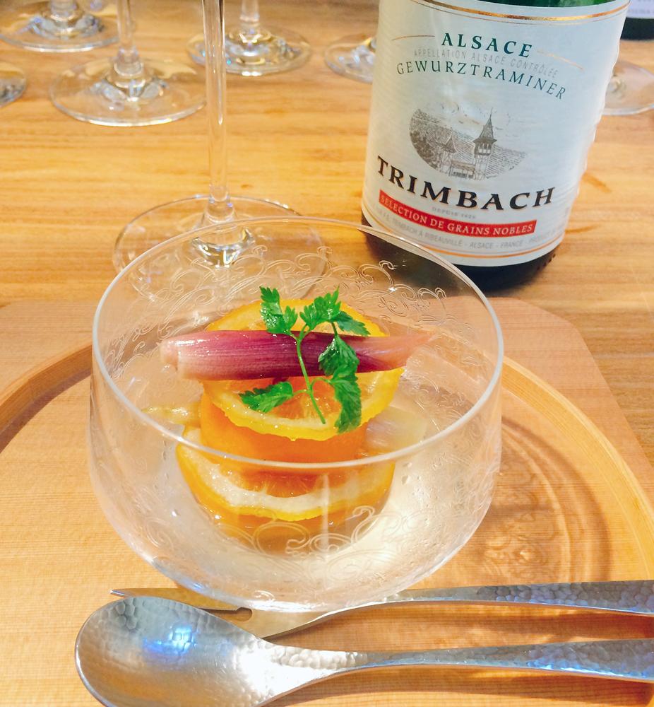 今回もお料理のコーディネートをお願いしたのは森上久生氏。前々回のバイヤーズトーク号外に続き2度目の登場となるが、アルザスの生産者トリンバックのワインを知り尽くし、特に世界中のリースリングに造詣の深い森上氏のワイン×9品の日本料理デギュスタシオンランチは、食材とワインの長所を最大値で活かす調味料や香辛料使いがキーワードとなった。