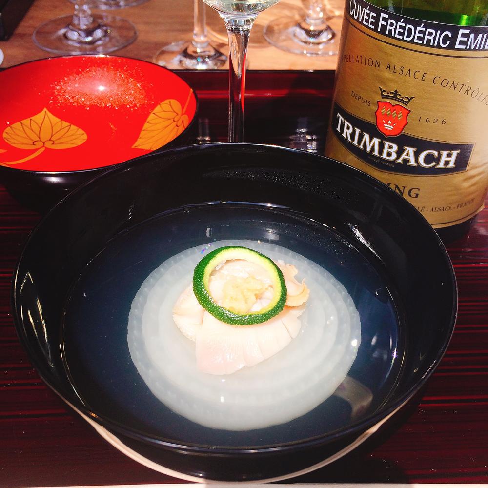 リースリング・キュヴェ・フレデリック・エミール 2007年蛤と新玉葱 生姜 酢橘(スダチ)