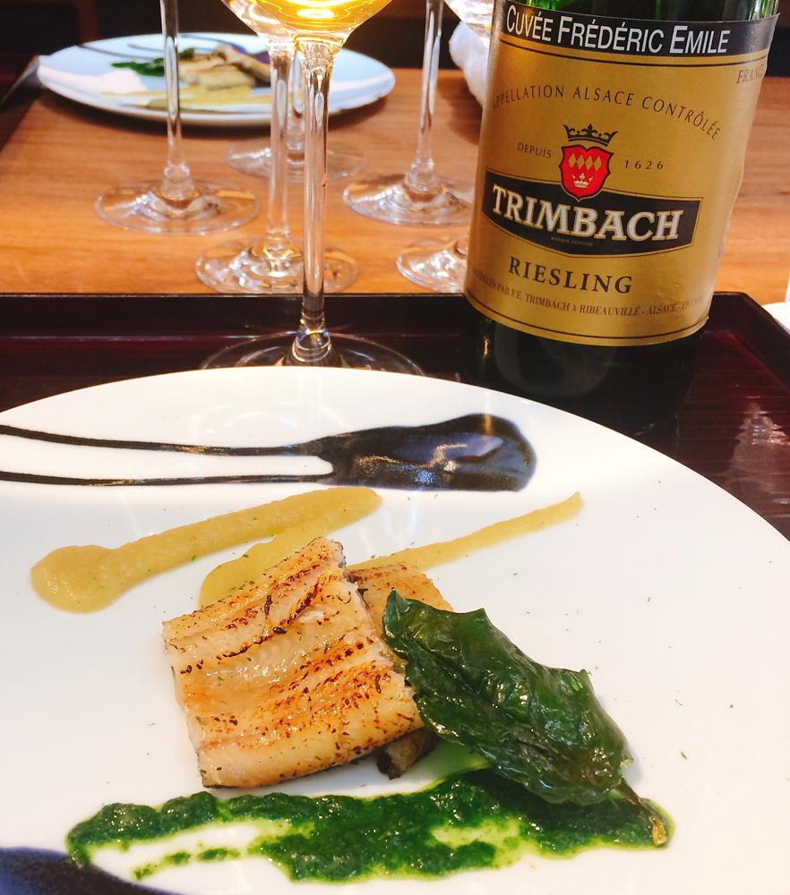トリンバック家8代目、フレデリックエミール氏の時代に国際コンクールで賞を受賞し、一躍国際的な脚光を浴びることになった功績に敬意を表してワイン名に。10年熟成による土っぽい大地の香りや完熟ピーチのフレーバーが複雑で、フルボディーではないが骨格感の充実した味わいが蛤の噛み応えや旨味とマッチ。鱧の歯ごたえのある食感をワインが優しく包んでくれる癒し系のマリアージュも美しく、海藻から作られる円やかな味わいの藻塩を振ることで更にワインの旨味が際立つ。