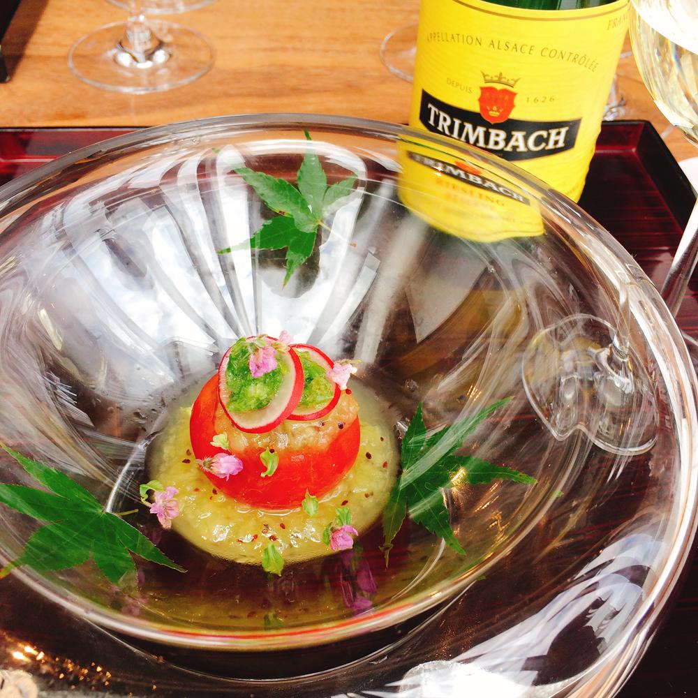 リースリング・レゼルヴ 2014年トマト釜に水雲(モズク)と煽り烏賊 叩きおくらとキウイ酢ジュレ