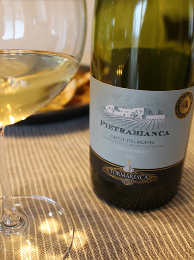 合わせるワインは、同じくプーリア州のシャルドネ「ピエトラビアンカ」をセレクト。名門アンティノリが太陽が燦々と注ぐプーリアの地に惚れ込み土地を購入、完全オーガニック栽培のブドウで仕立てた上質なシャルドネです。