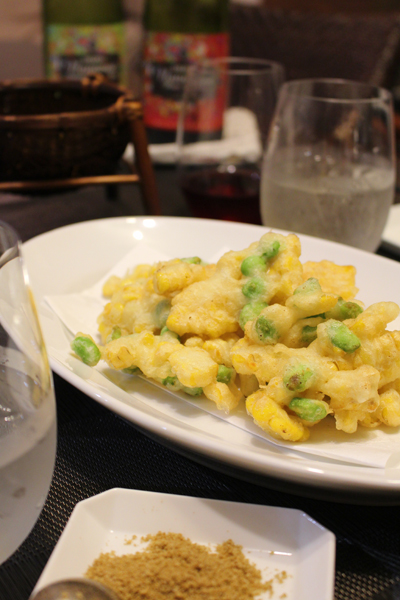 食事の後半、ちょっと揚げ物も食べたいね!となり、とうもろこしと枝豆のつまみ揚げも。