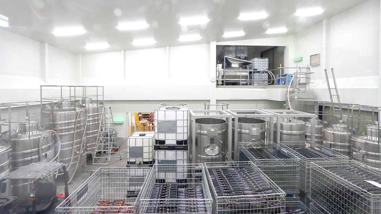 ワイナリーの中に入ると窓から醸造場を見ることができます。実際にワイン造りの工程などを説明いただきました。排水溝など一つとっても、徹底した衛生管理のこだわりが詰まっているそうです。