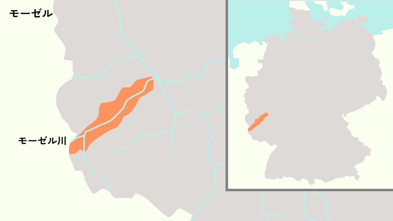 フランス・アルザスのヴォージュ山脈を水源とするモーゼル川に沿って広がる産地。川の流れに沿って様々に向きを変える渓谷の急斜面にブドウ畑が広がっています。