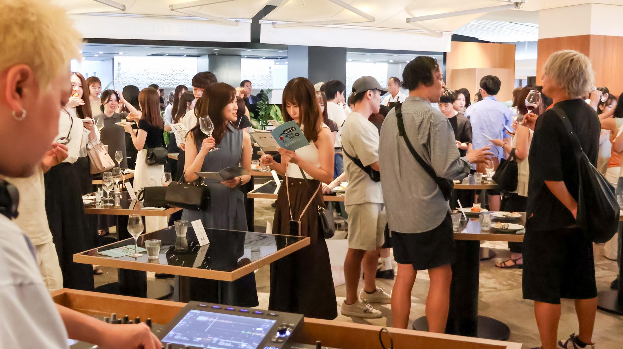 入場チケットでワイン30種とペアリングフードが楽しめるオールインクルーシブスタイル。