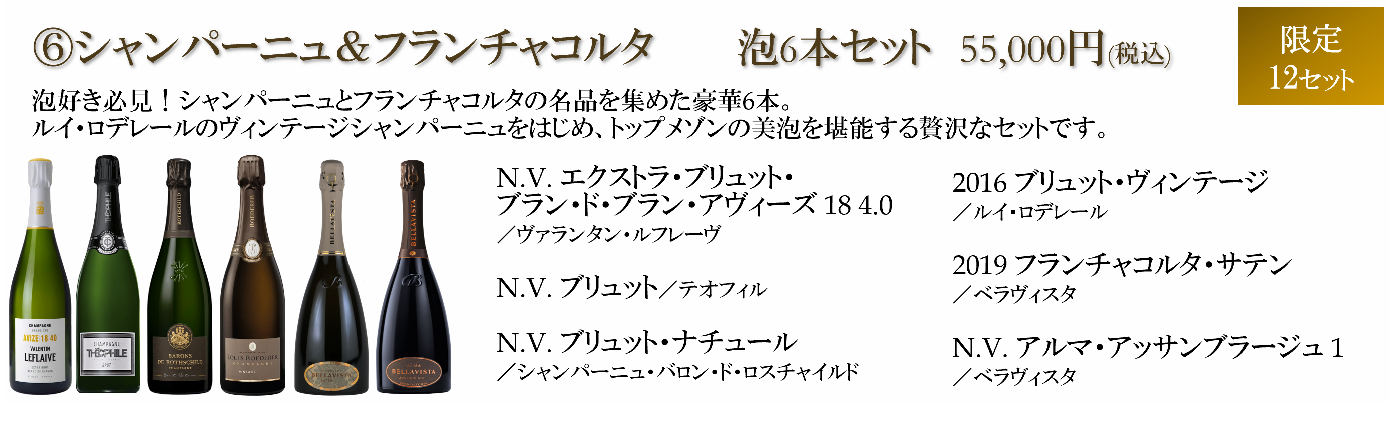 シャンパーニュ&フランチャコルタ 泡6本セット 55,000円(税込) *限定12セット*