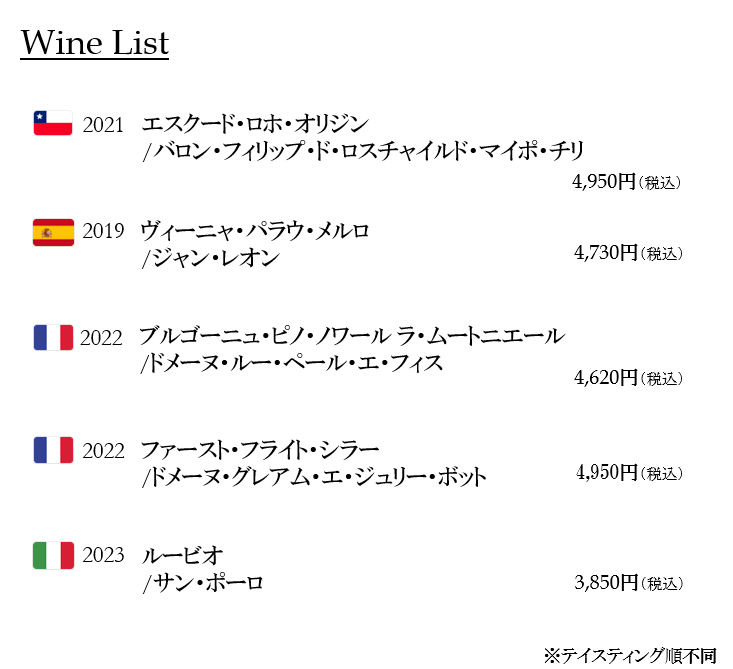 当日はスタッフの近藤より各ワインのご説明をさせていただきます。
