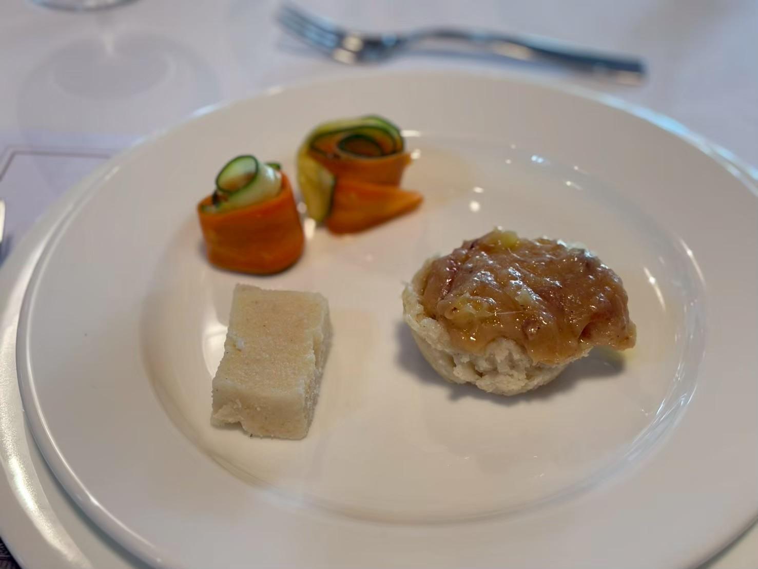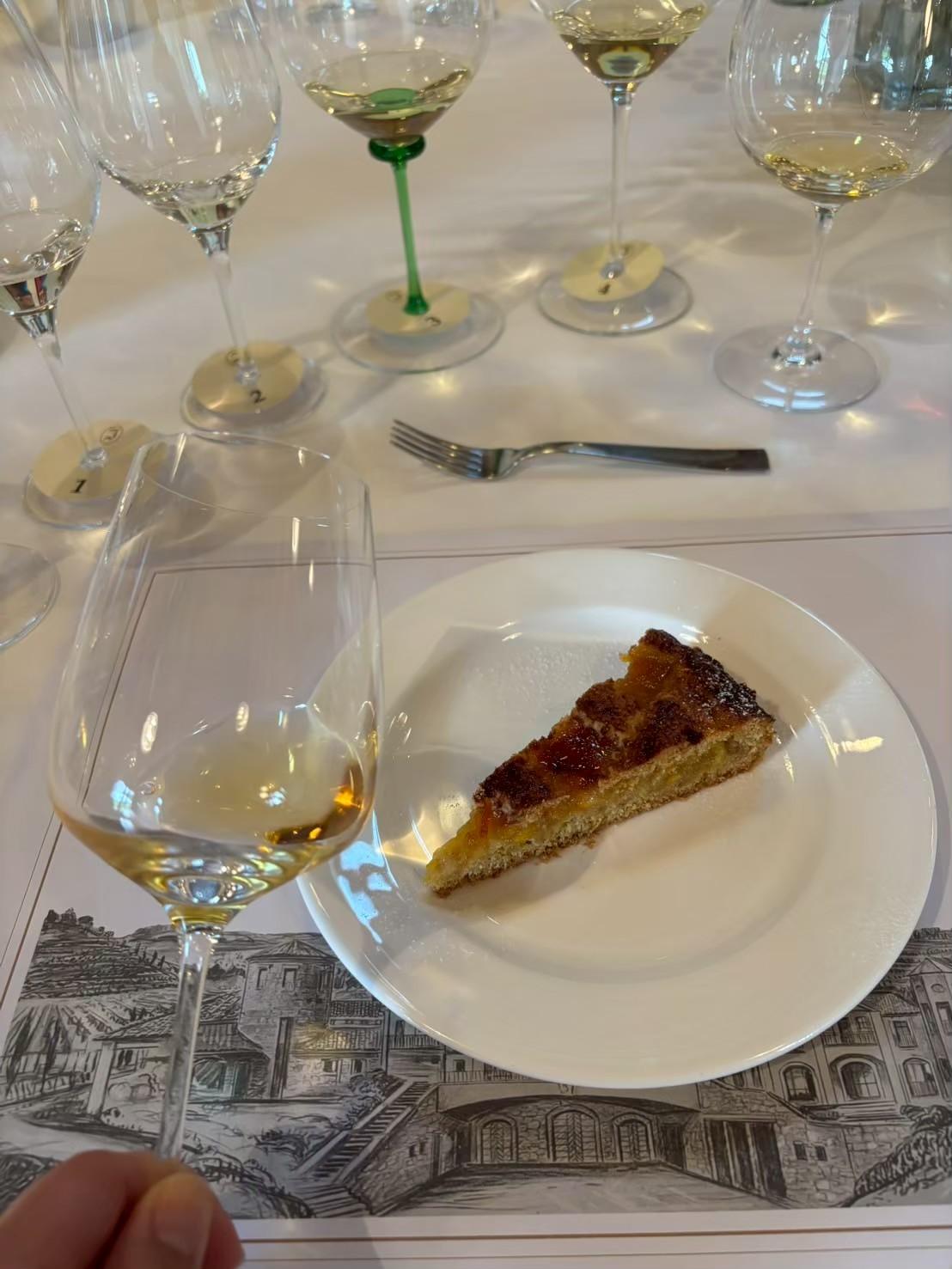 黄桃やアプリコット、カモミールの香りが重なり、滑らかなテクスチャーがパスタのバターと溶け合う。