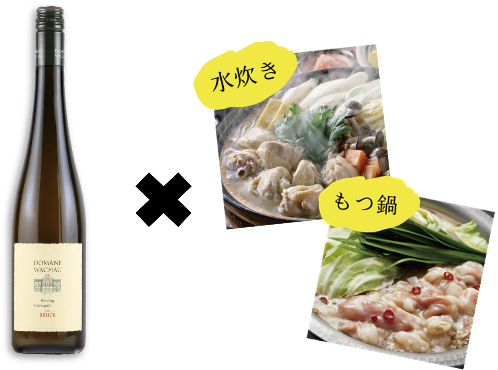 2022 リースリング フェーダー・シュピール リード・ブリュック /ドメーヌ・ヴァッハウ (オーストリア ニーダー・エスタライヒ) 3,300円(税込) オーストリアの銘醸地ヴァッハウにて、古い歴史を持つ生産者の辛口白。 出汁の旨みや野菜の甘みを引き立て、後味をさっぱりさせてくれるワインです。鶏の旨みの九州名物水炊きや、程良くオイリーでまろやかなコクが醤油系のもつ鍋にも◎。 熟した果実のアロマと生き生きとした酸が魅力の1本!
