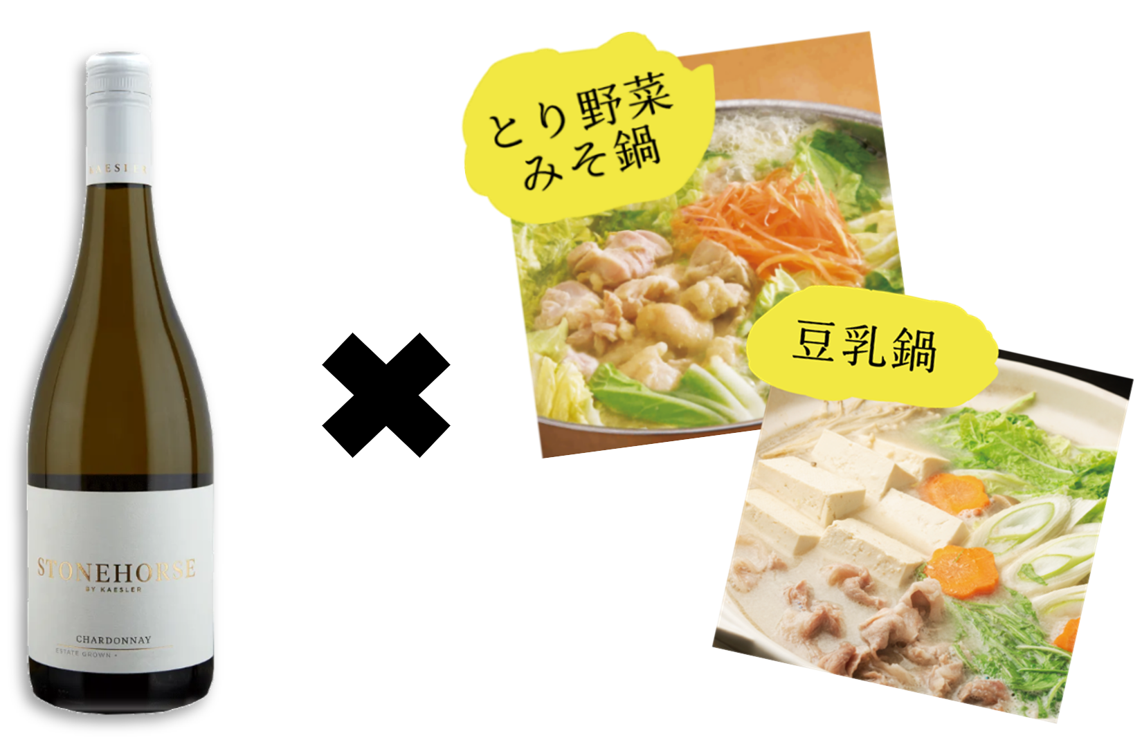 2023 ストーンホース・シャルドネ / ケーズラー (オーストラリア 南オーストラリア)2,970円(税込) オーストラリアのベンチマークであるバロッサ・ヴァレーの老舗が造る辛口白。 程良いコクとまろやかな味わいが魅力です。 シャルドネ種の果実味とやさしい酸が、味噌や豆乳の大豆由来のコクと相性◎。 味噌の塩気や旨味を、綺麗な酸がまとめてくれます。