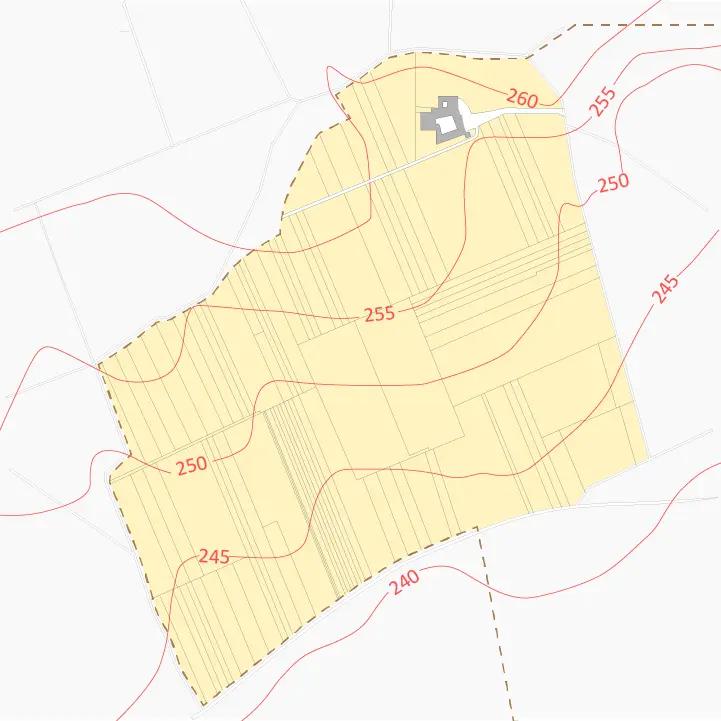 区画の高台部分は粘土質石灰土壌、低地部は粘土質泥土土壌で構成されています。