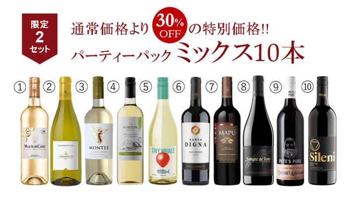 日常の食卓に合わせやすく、大人数でワイワイ楽しんでいただける、白ワイン5本と赤ワイン5本の合計10本を特別価格にてご案内♪