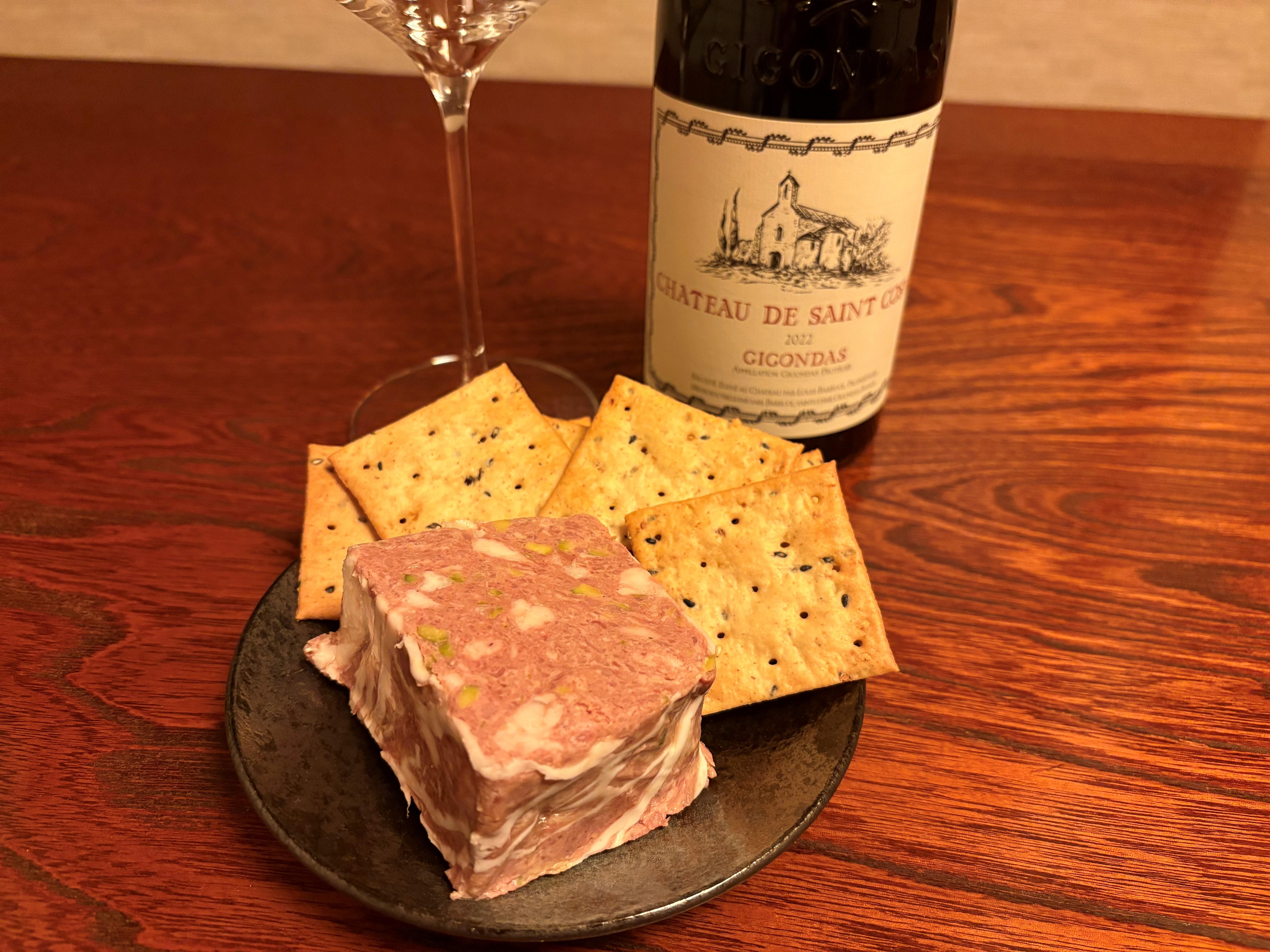 今晩のおつまみはパテとクラッカーを買ってきました。今年の晩酌ブログは、パンナコッタから始まり、紅茶のカプレーゼだったり生姜焼きだったりと料理にまで手を出し始め、ペアリングに充実感が出てきたような感じがします。でも今回はワインをメインで楽しみたいので、お供は簡単に。