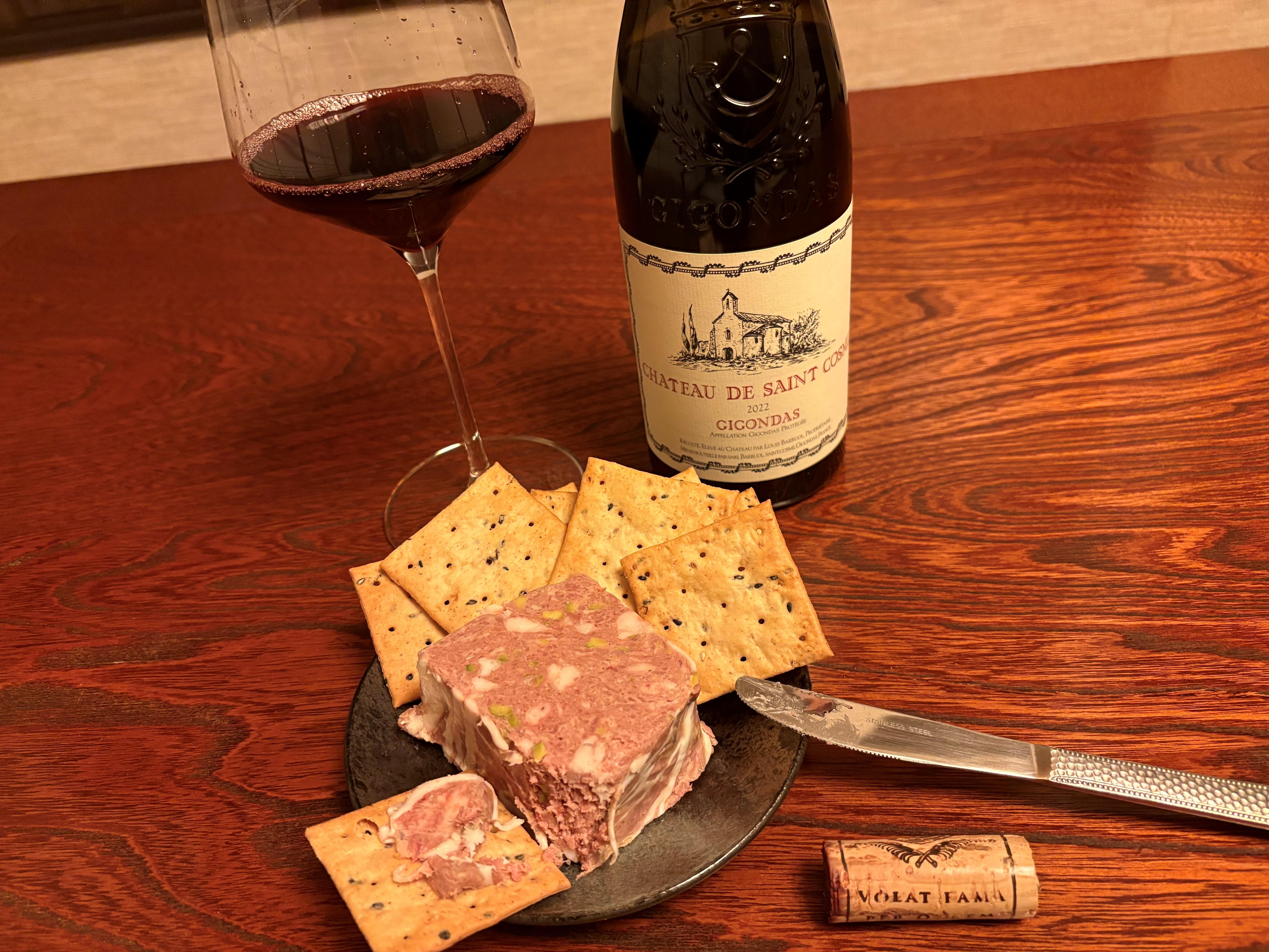 ジゴンダスとの相性はというと、濃い味のワイルドなパテに無論合わないはずがなく。パテのテリテリとした脂質がジゴンダスの華やかなアロマをより助長してくれますし、ワインの芳醇で仄かにスパイスを感じる余韻が、ピスタチオの香味ともマッチするのです。ジゴンダスの隠れた深みと複雑感をパテがより引き出してくれている。声楽と交響曲の融合で生まれる第九の世界観とどこか似ているように感じます。