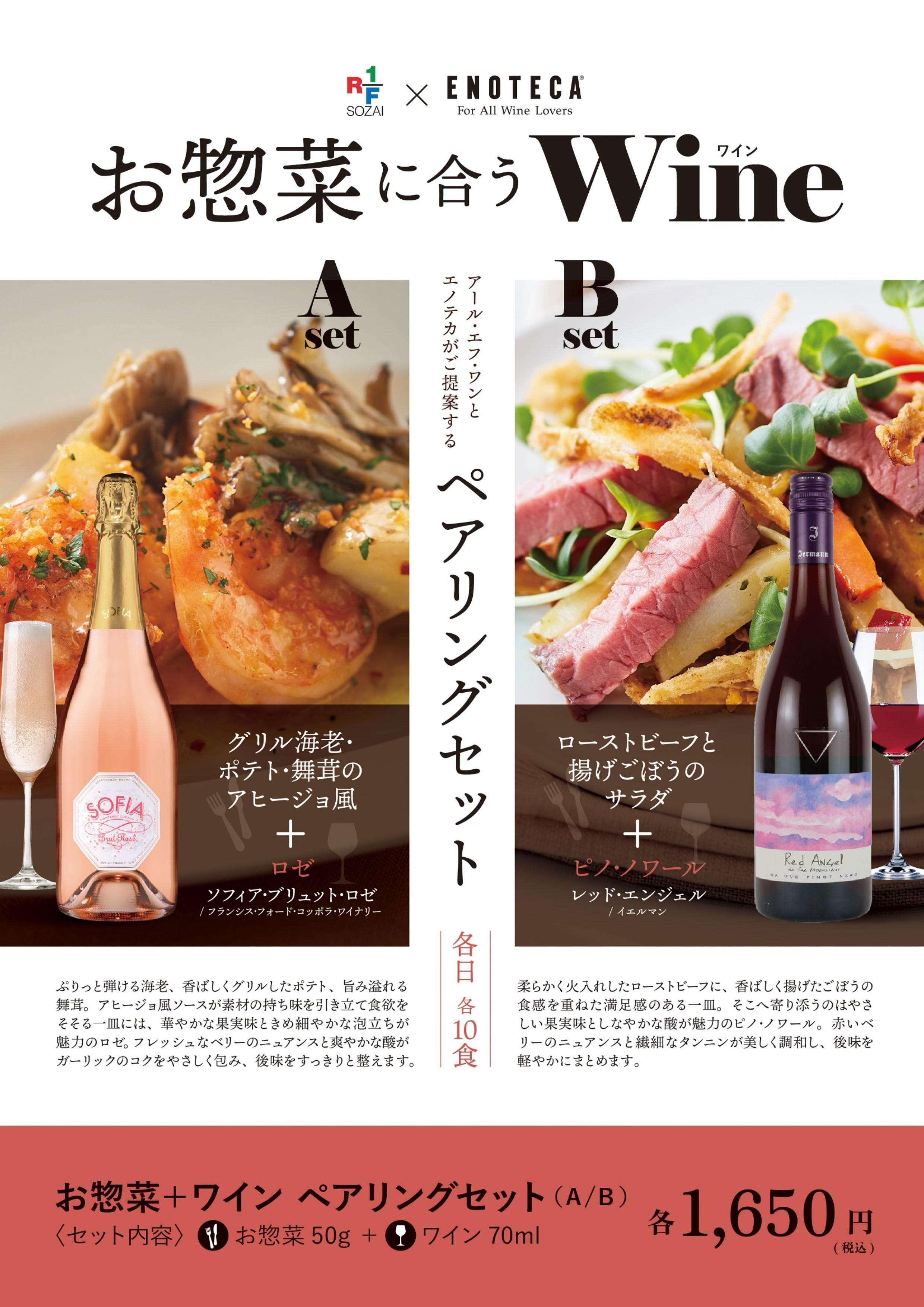 ぜひこの機会にRF1の美味しいお惣菜とワインとペアリングをお楽しみください。