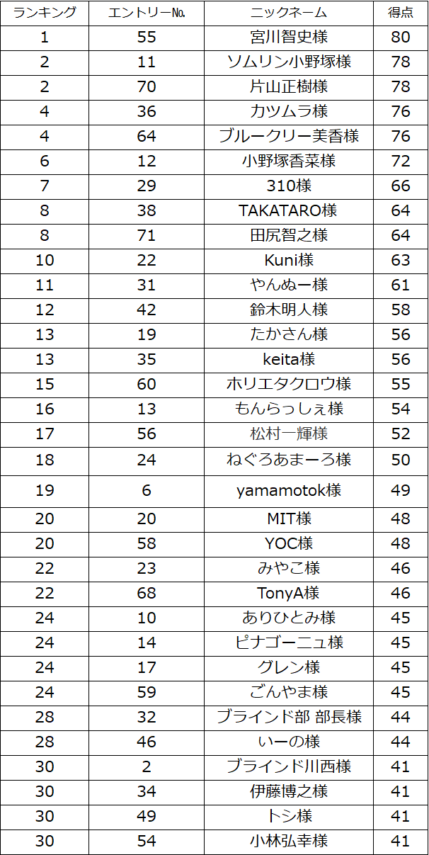 正直このような難しい問題で80点を叩き出す方がいるとは思いませんでした!