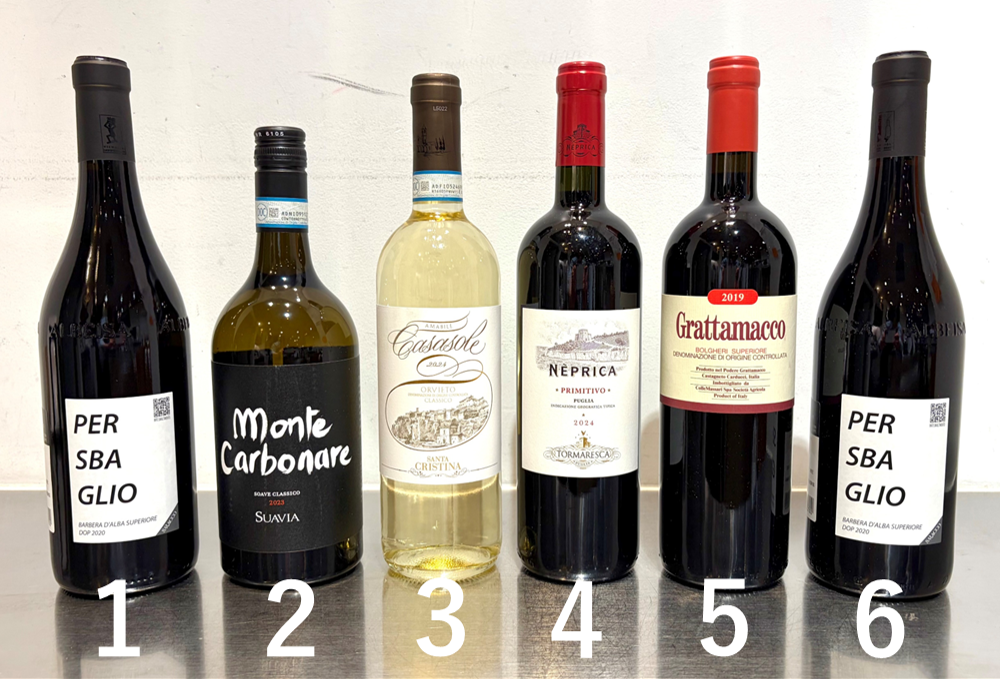 【Q3】1~ 6 のワインのうち2つのワインには、ある驚くべき共通点があります。その2つの番号と、共通点を選択肢A~Dから選んで解答用紙に記入してください。