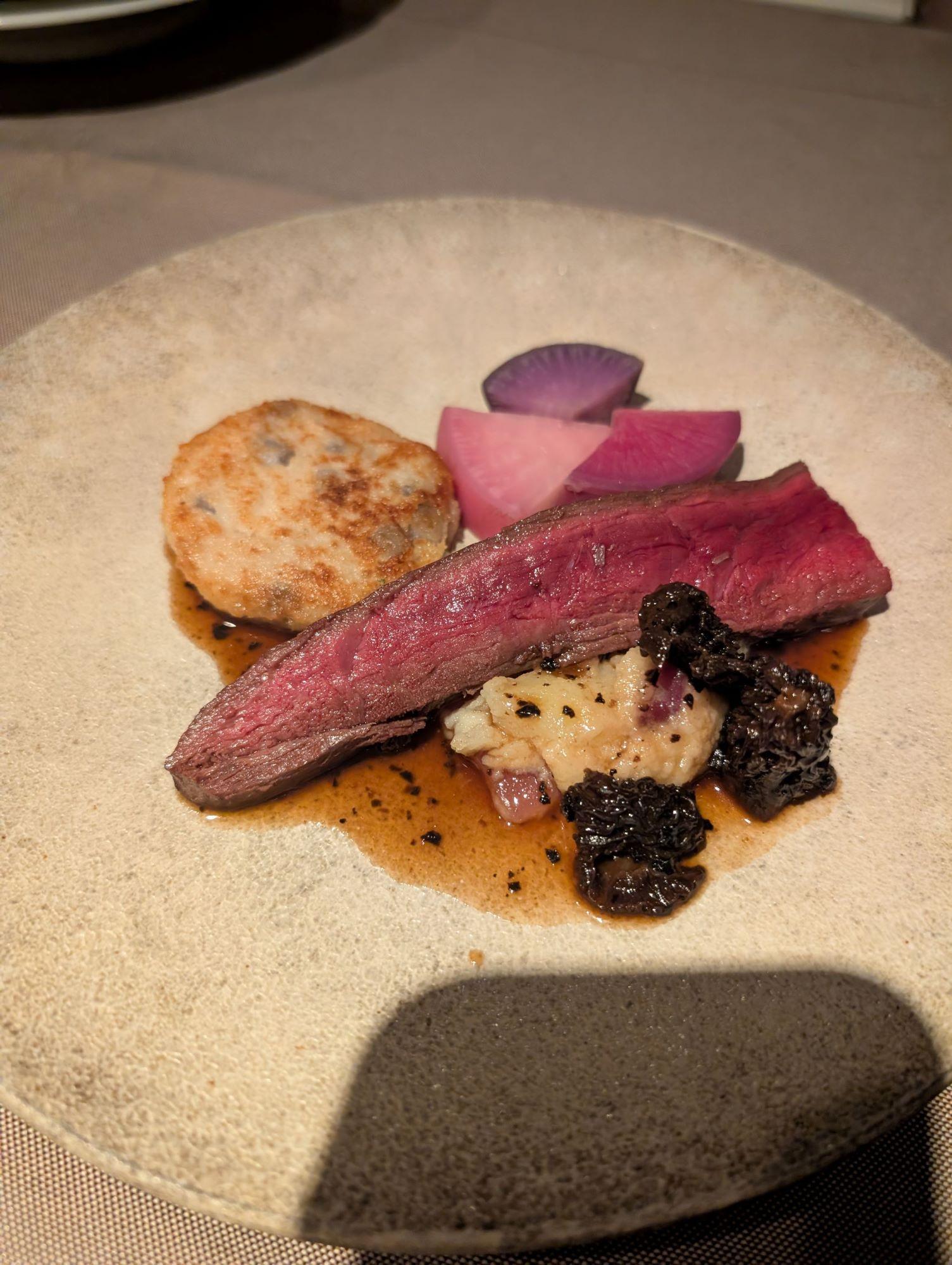 【ヴィアンド】蝦夷鹿内もも肉のロースト フランス産キノコのソース