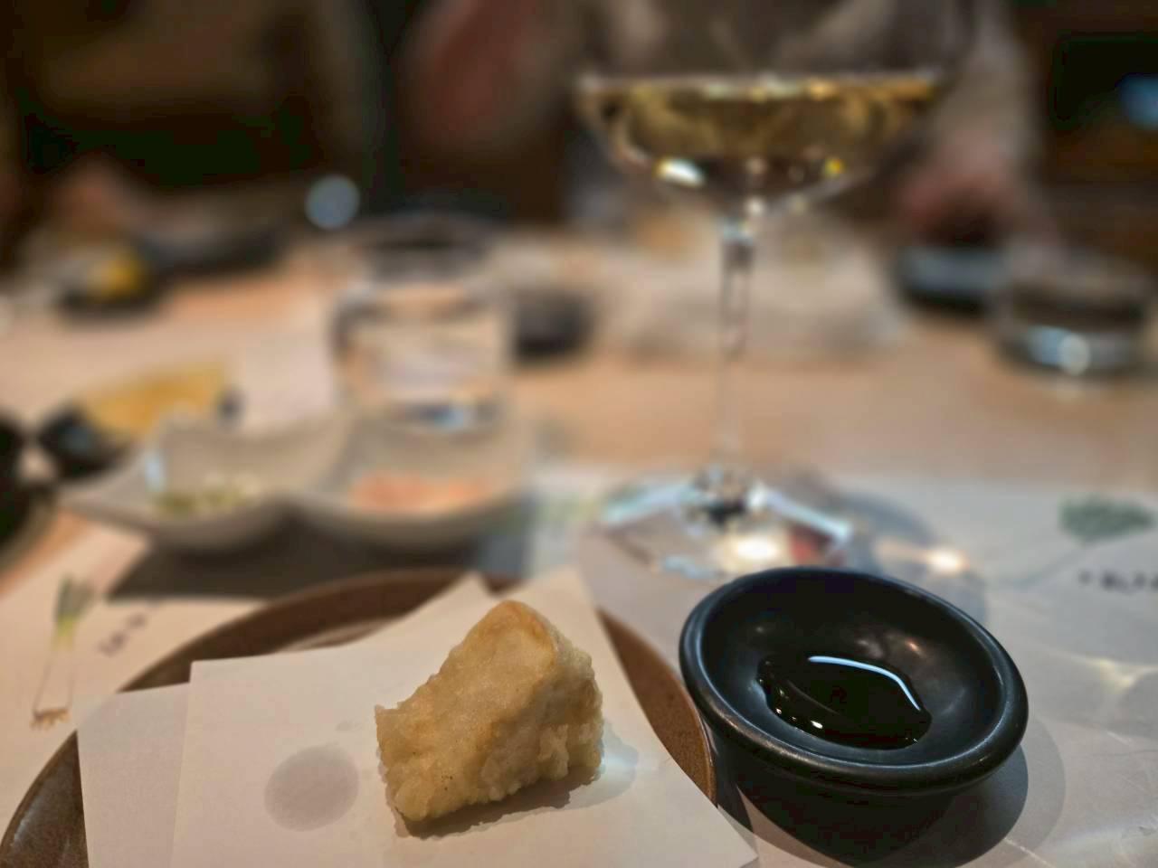 実は提供少し前にお店の方から、いつもカマンベールチーズの天ぷらには別添えでメープルシロップをつけているのですが