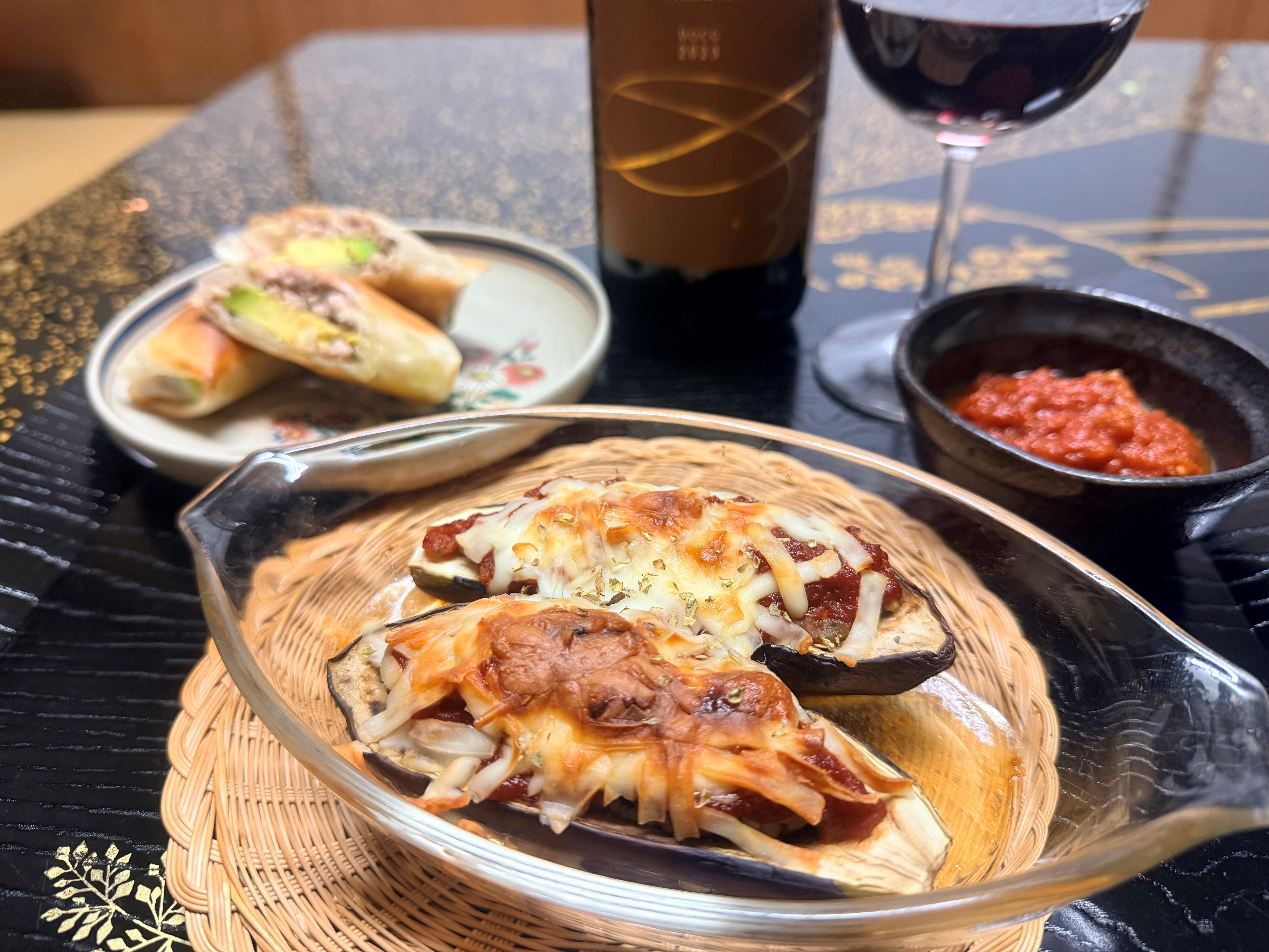 今回は、茄子のグラタンと、アボカドの揚げ春巻きにしてみました!