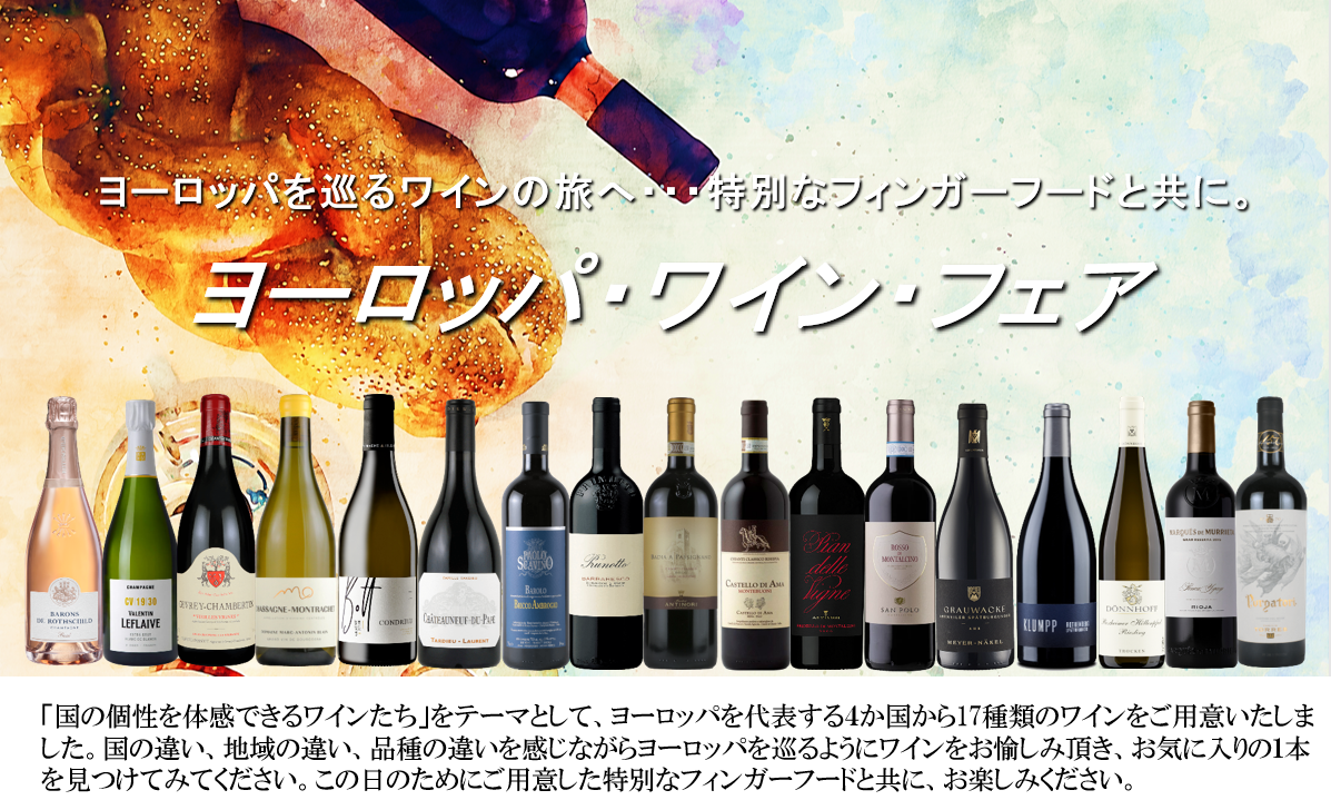 国の違い、地域の違い、品種の違いを感じながらヨーロッパを巡るようにワインをお愉しみ頂き、お気に入りの1本を見つけてみてください。