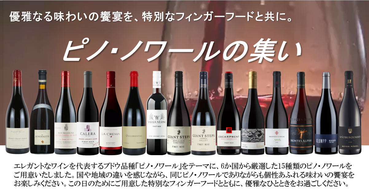 国や地域の違いを感じながら、同じピノ・ノワールでありながらも個性あふれる味わいの饗宴をお楽しみください。